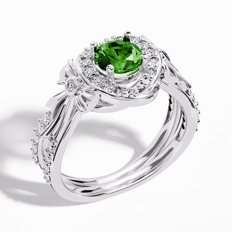 Graceful Bow Entwined Ring - Emerald - Serene Western